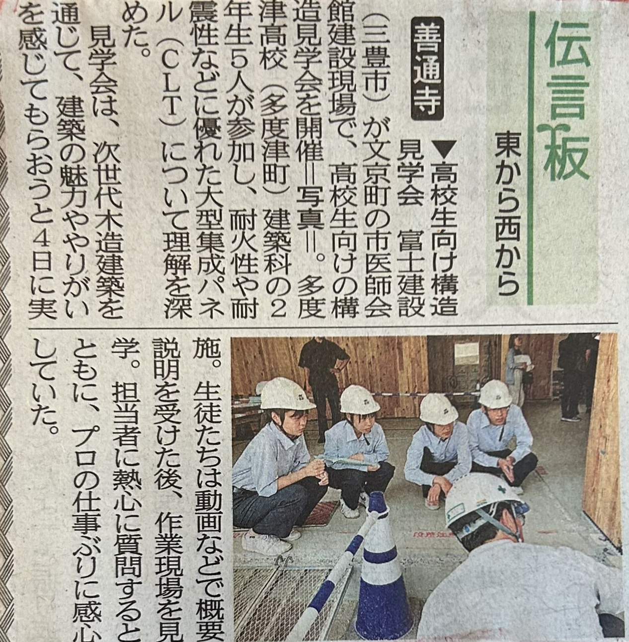 CLT構造見学会の様子が四国新聞に掲載されました。
